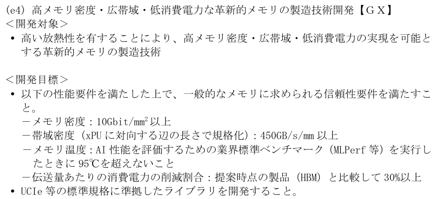 (e4)高メモリ密度・広帯域・低消費電力な革新的メモリの製造技術開発【GX】