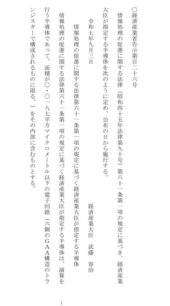 情報処理の促進に関する法律第六十一条第一項の規定に基づく経済産業大臣が指定する半導体