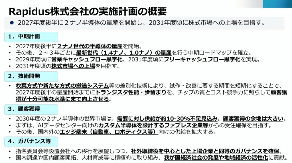 Rapidusの今後のマイルストーン